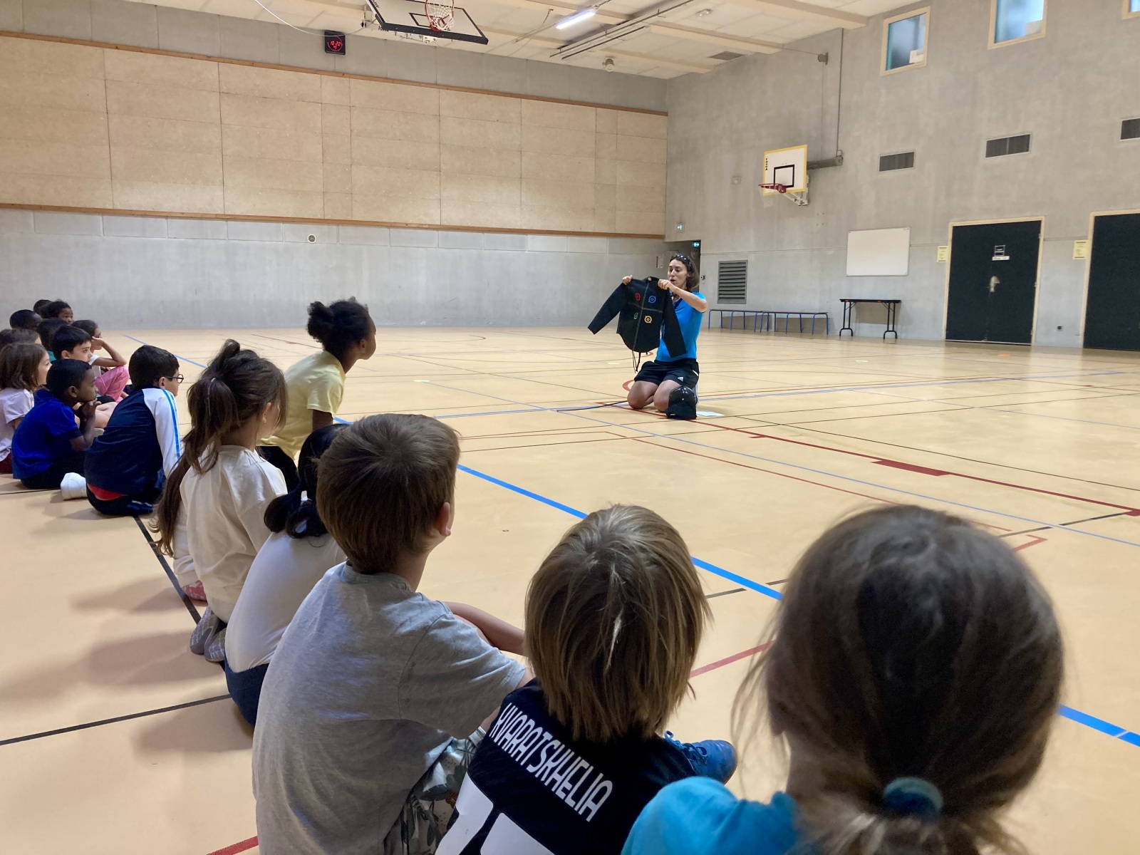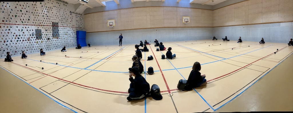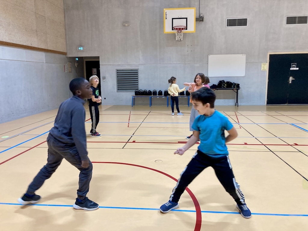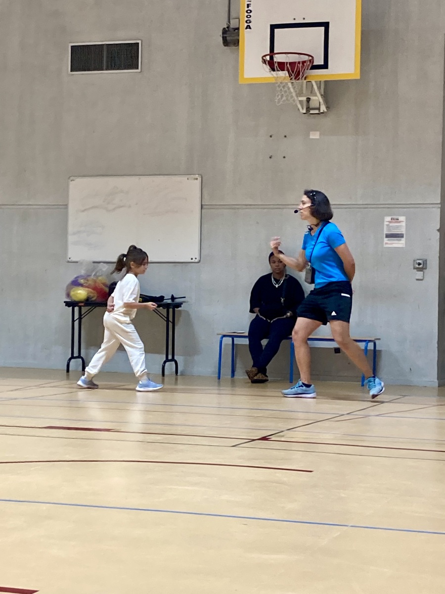 Sur chaque piste, nous endossons tour à tour le rôle d’arbitre : il faut dire fermement les commandements (« à vos fleurets », « saluez », « en garde », « prêts? », « allez », « halte »…) en faisant les bons gestes. Ce n’est pas facile mais certains réussissent déjà très bien !