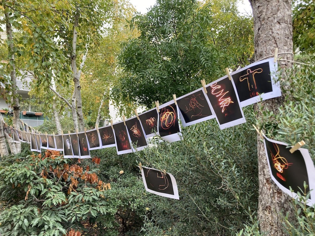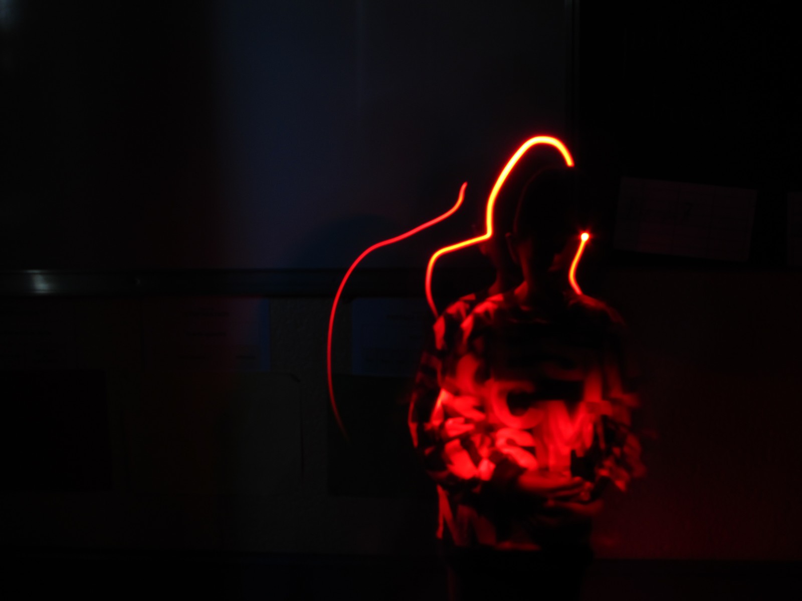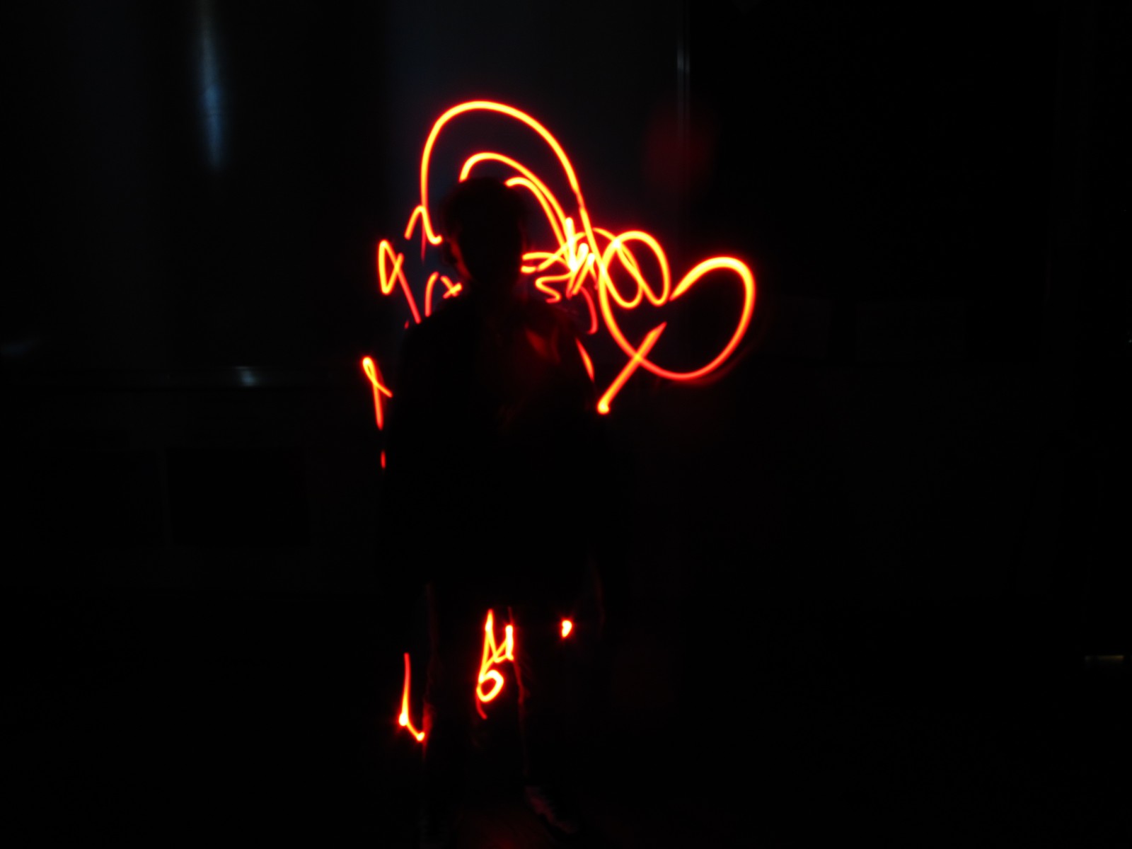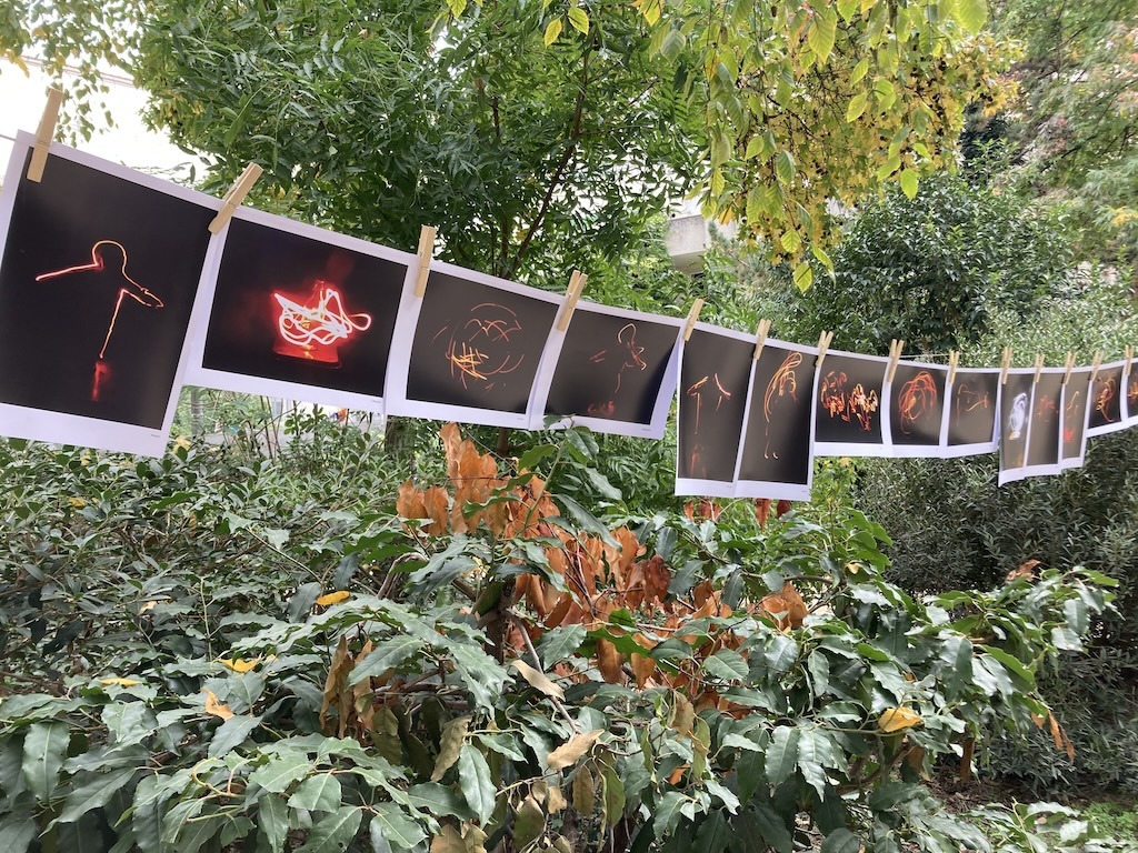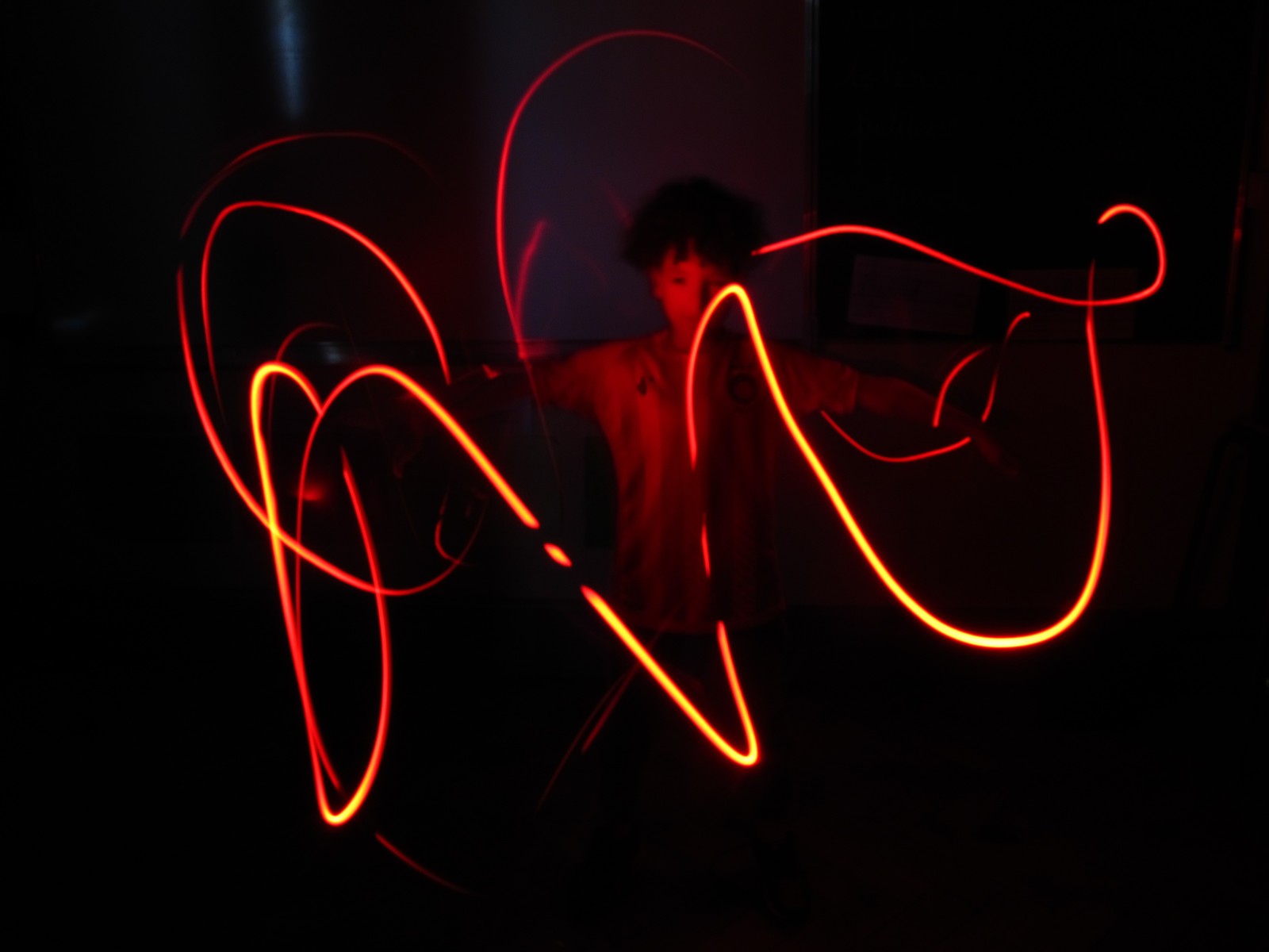 Sidonie détaille : « Il nous fallait une lampe de poche (de couleur ou pas), un appareil photo et un trépied. Nous nous sommes mis dans le noir. Pendant que nous étions dans le noir, l’obturateur de l’appareil photo s’ouvrait pendant 15 secondes. En même temps, on faisait des gestes avec la lampe. »