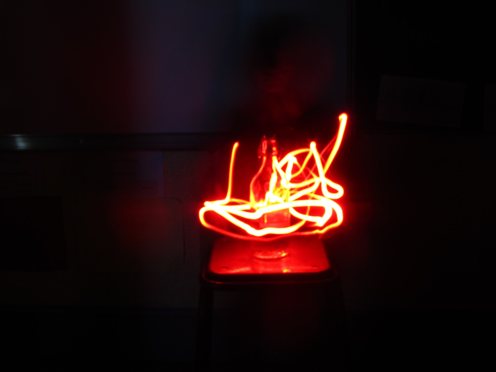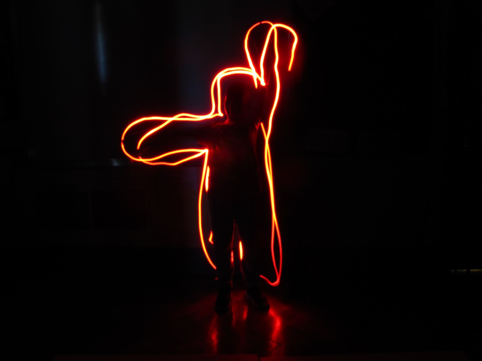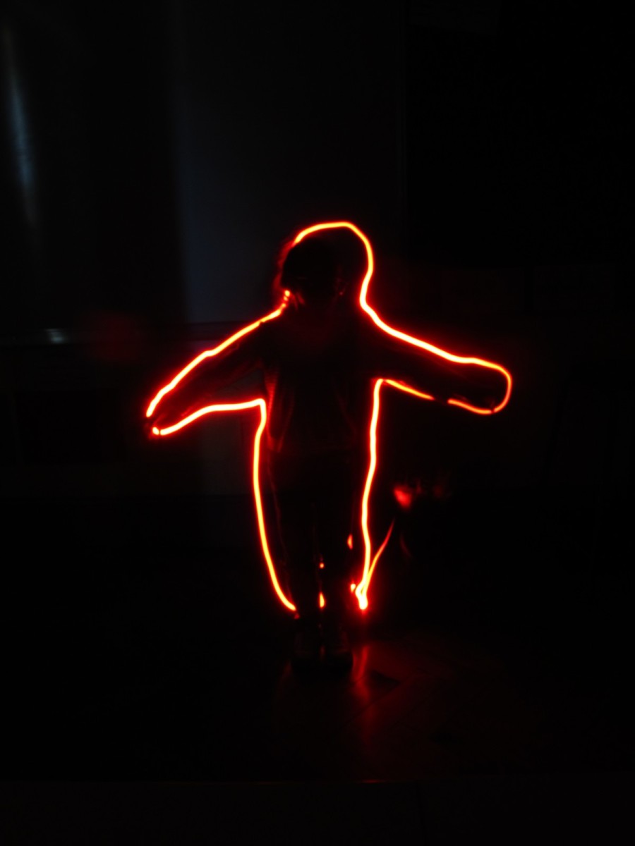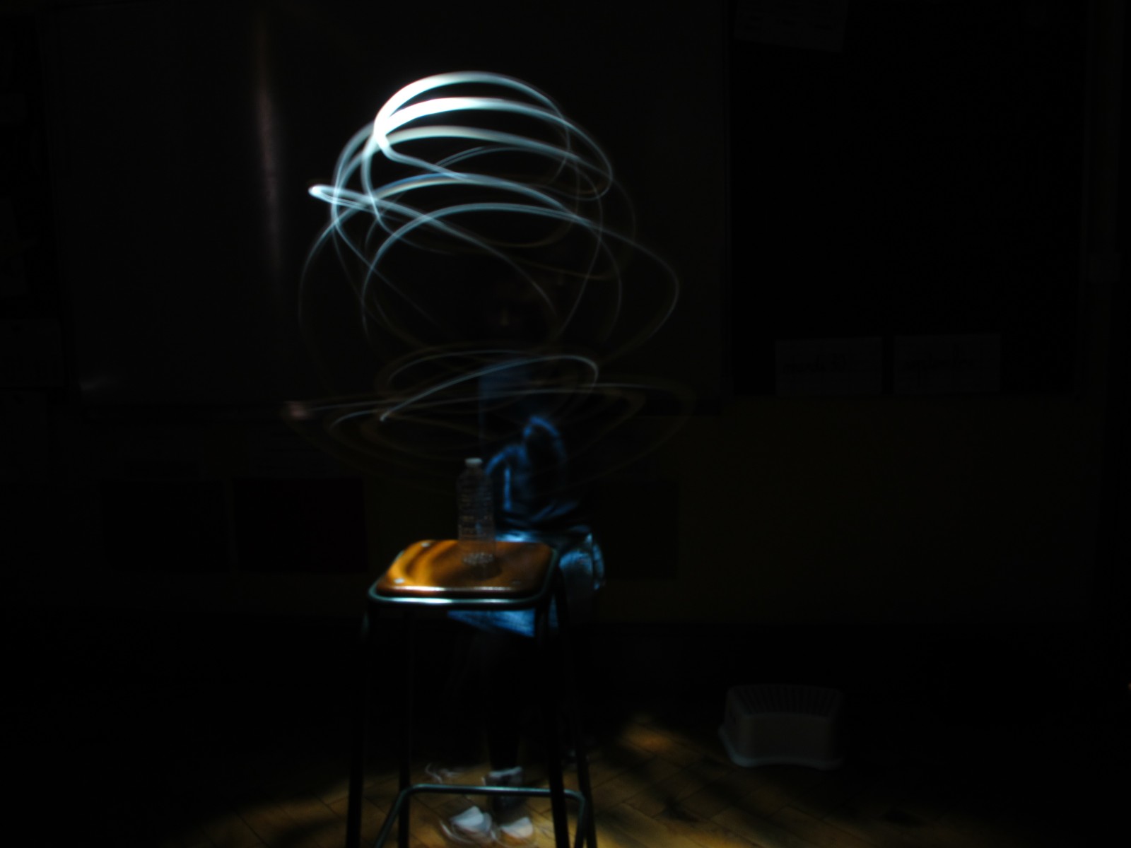 Sidonie détaille : « Il nous fallait une lampe de poche (de couleur ou pas), un appareil photo et un trépied. Nous nous sommes mis dans le noir. Pendant que nous étions dans le noir, l’obturateur de l’appareil photo s’ouvrait pendant 15 secondes. En même temps, on faisait des gestes avec la lampe. »