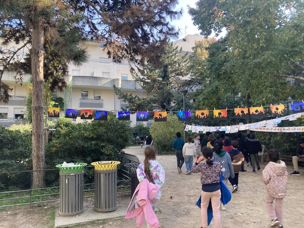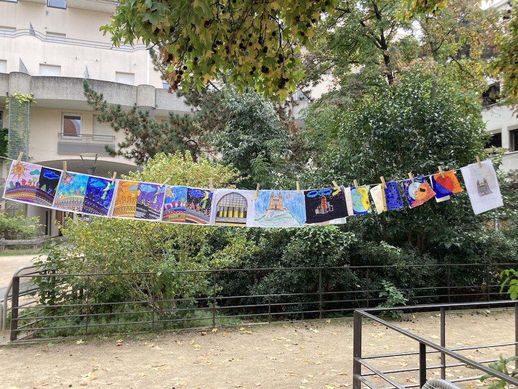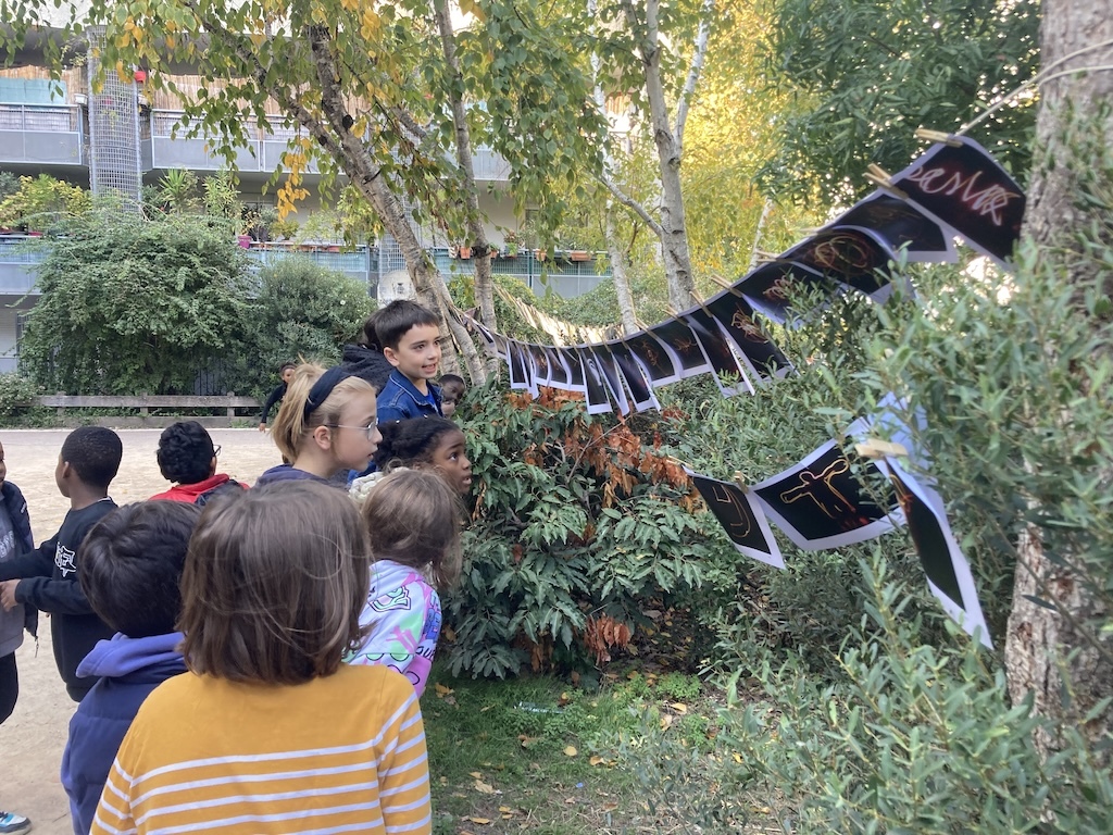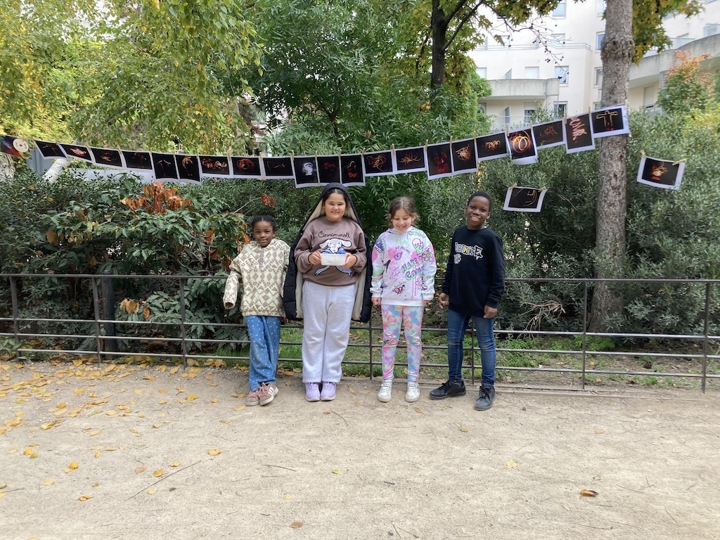 Joe rapporte : « Le jour-J, à midi, les professeurs ont accroché les œuvres de toutes les classes. L’après-midi, on est allés voir l’exposition dans le square. »