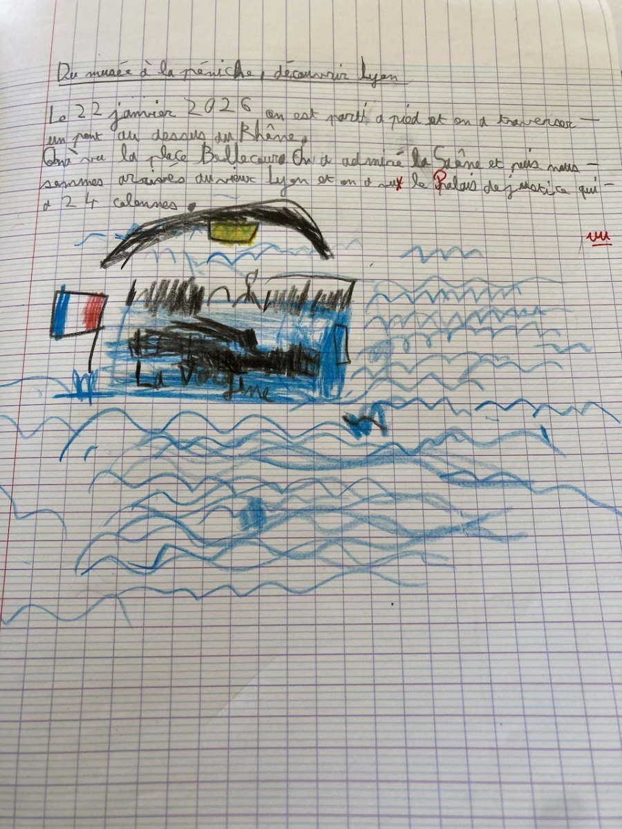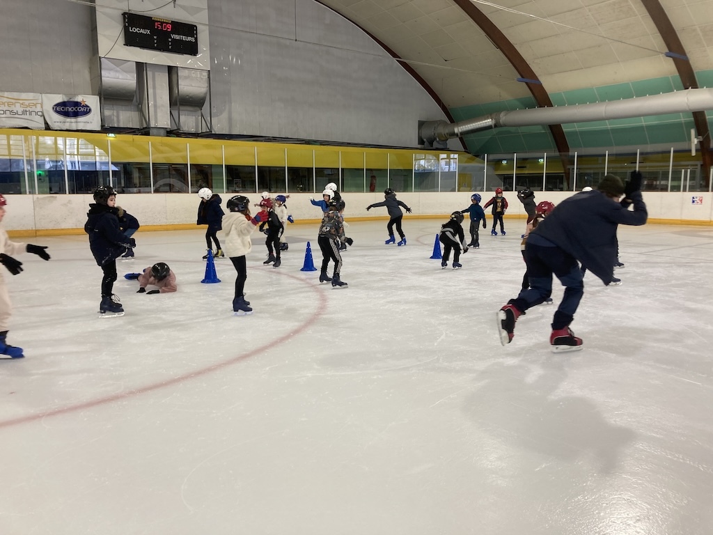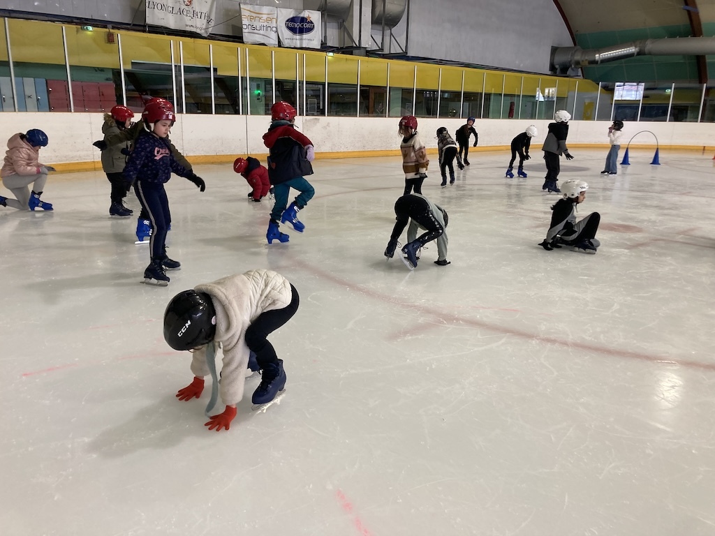 Albara confie : « Nous sommes allés en car de l’école à la rue Baraban, à Villeurbanne. Nous avons commencé le 29 janvier. En premier, chacun allait chercher la pointure sur ses patins. Pour s’équiper, on met les patins, le casque et en dernier les gants. Nous sommes allés sur la glace, avec des épreuves. À la fin, j’ai aimé parce que j’ai appris à glisser. »