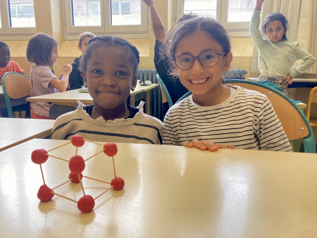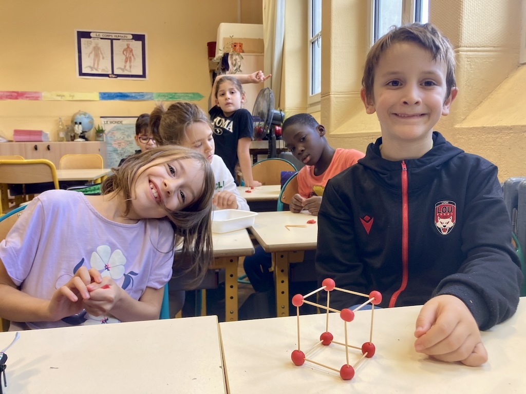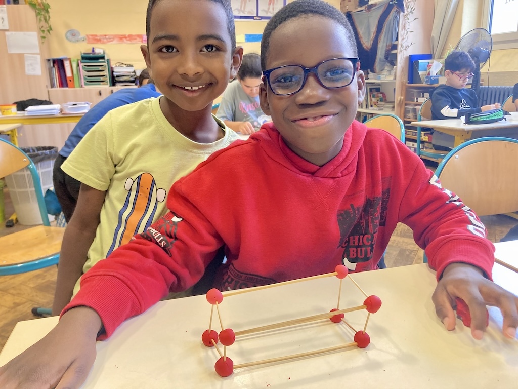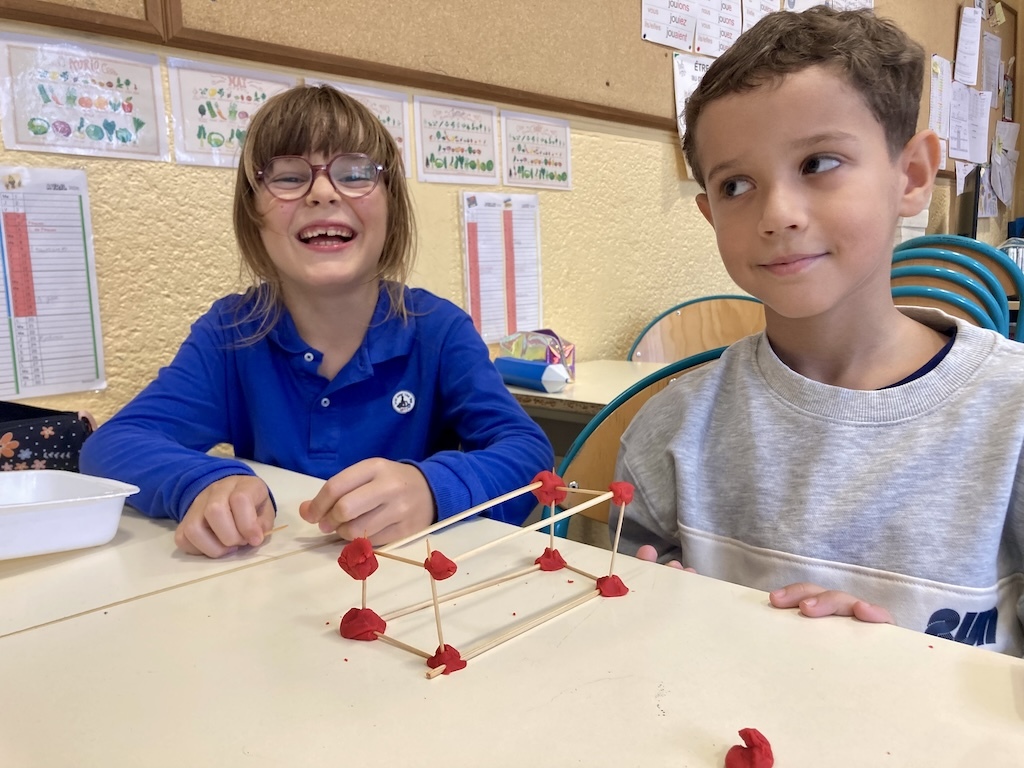 Aux sommets, de la pâte à modeler ; en guise d’arêtes, des baguettes ; s’agit-il d’un pavé droit, d’un cube, d’une pyramide, d’un prisme ?