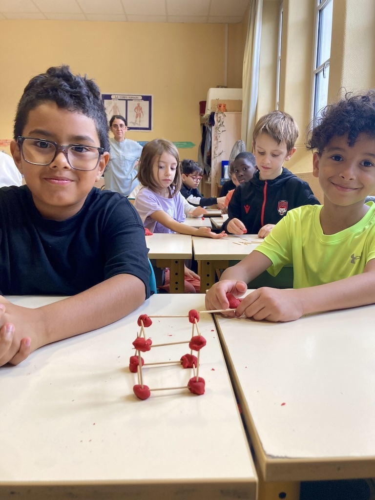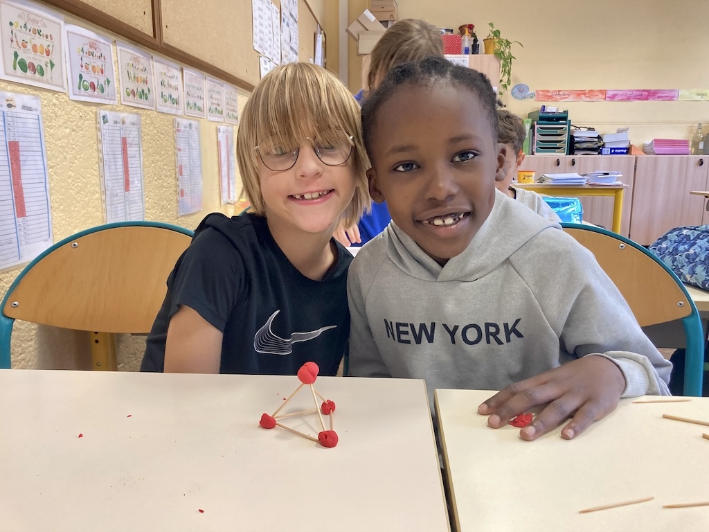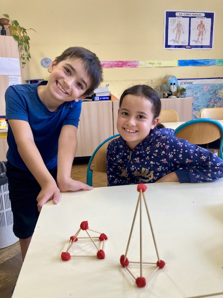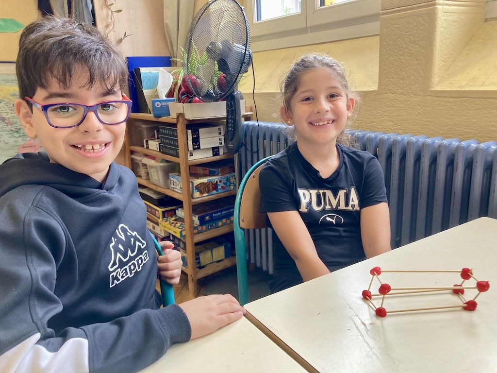 Aux sommets, de la pâte à modeler ; en guise d’arêtes, des baguettes ; s’agit-il d’un pavé droit, d’un cube, d’une pyramide, d’un prisme ?